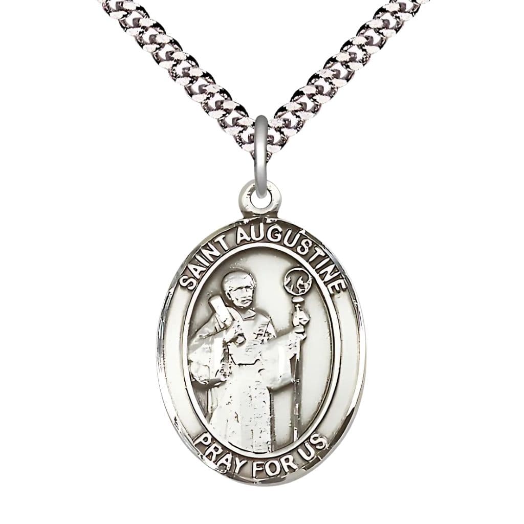 St. Augustine of Canterbury Pewter Oval Engravable Medal Necklace