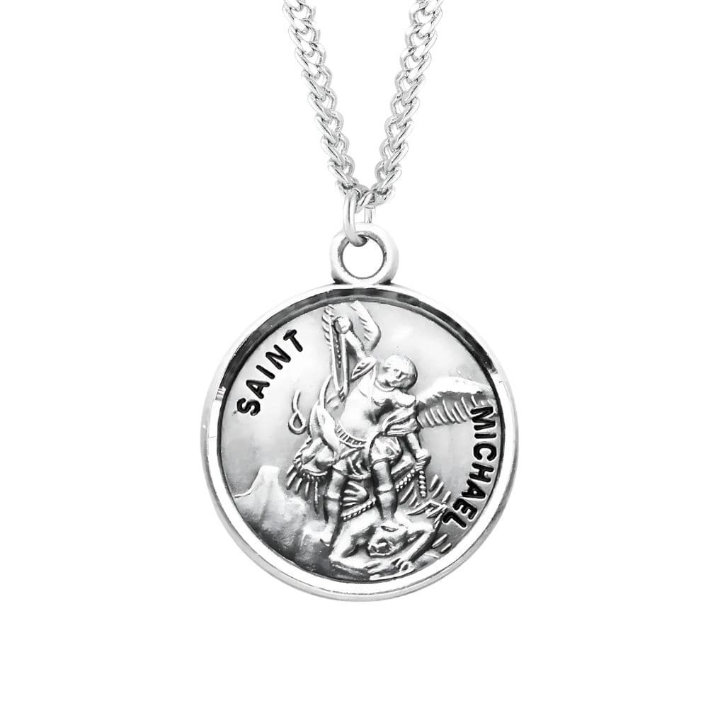 St. Michael Round Sterling Silver Medal Necklace - HMH Religious