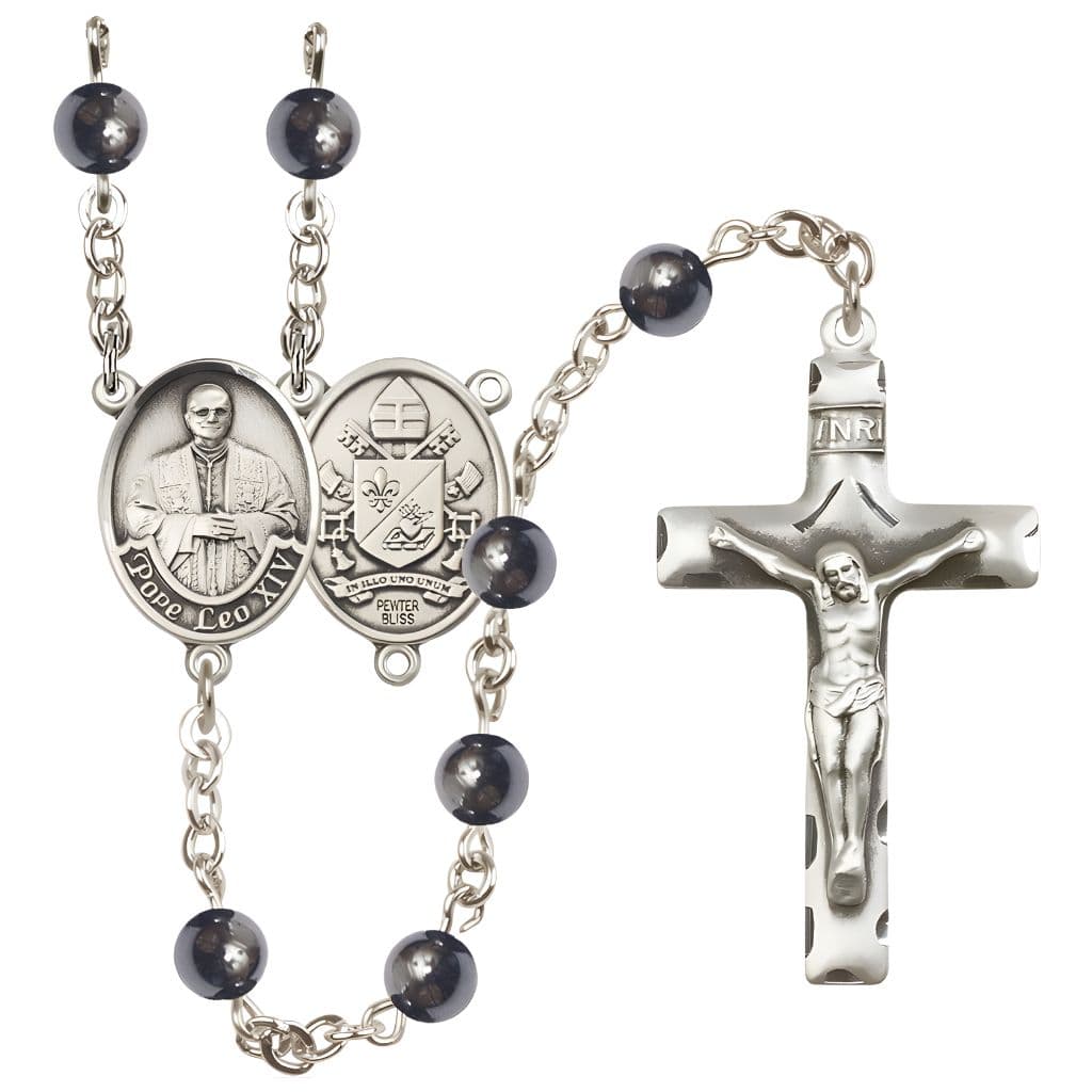 Pope Leo XIV 6mm Hematite Catholic Rosary | Bliss