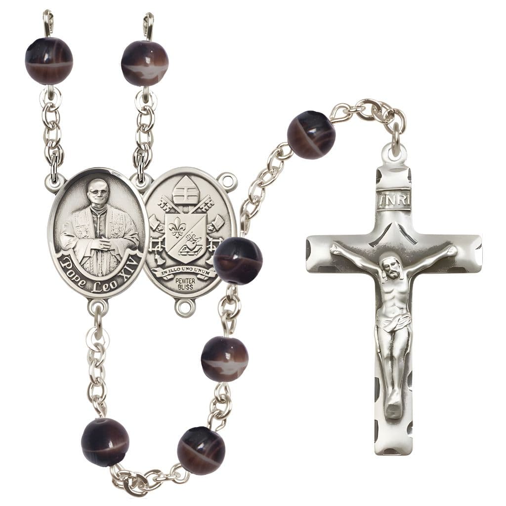 Pope Leo XIV 7mm Brown Bead Rosary - Bliss USA