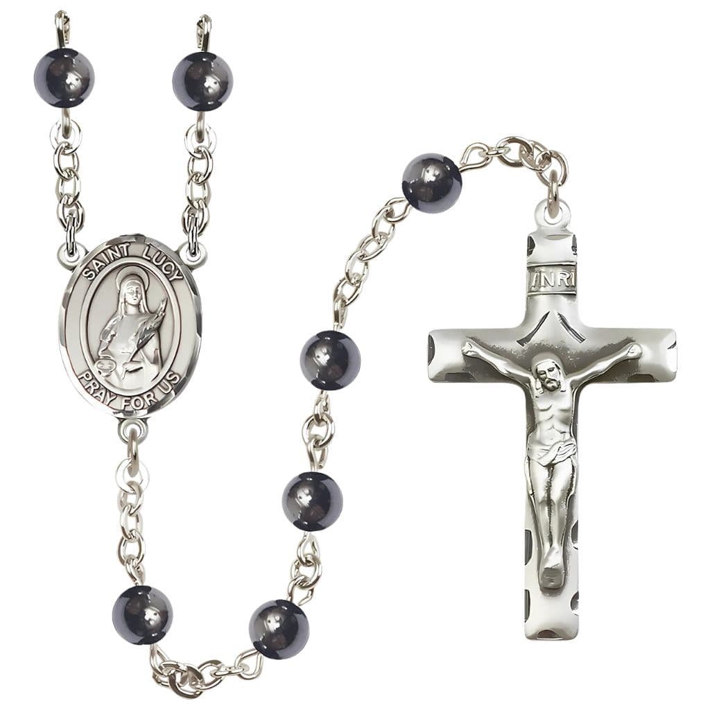 St. Lucy 6mm Hematite Catholic Rosary - Bliss USA