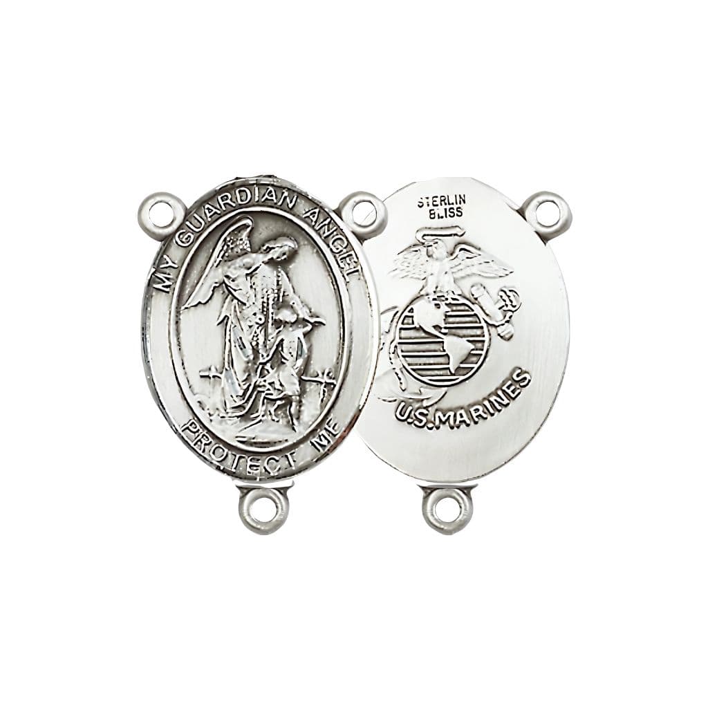 - Guardian Angel with Marine Symbol on Back Centerpiece: A 3/4-inch by 1/2-inch with detailed, adding elegance and spiritual significance. Shown in Sterling Silver.