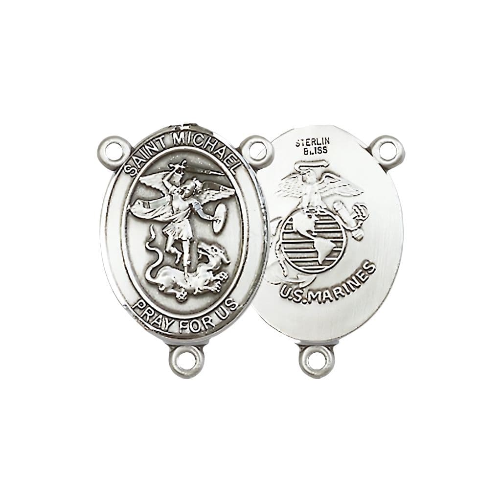 - St. Michael with Marine Symbol on Back Centerpiece: A 3/4-inch by 1/2-inch with detailed, adding elegance and spiritual significance. Shown in Sterling Silver.