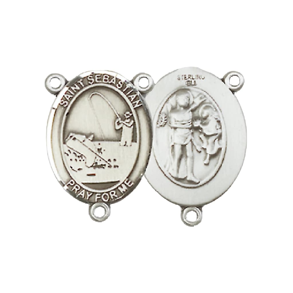 • Fishing Figure with St. Sebastian on Back Centerpiece: A 3/4-inch by 1/2-inch with detailed, adding elegance and spiritual significance. Shown in Sterling Silver.