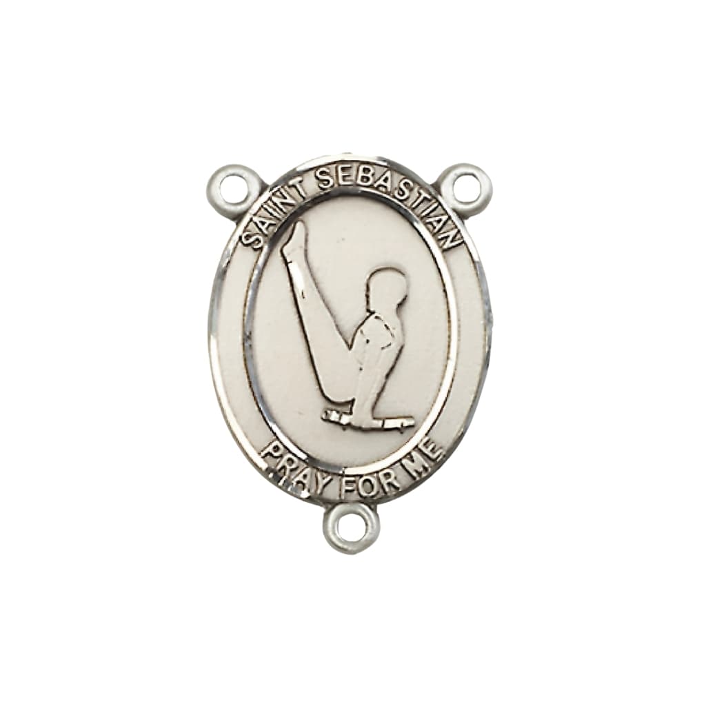 • Gymnastics Figure with St. Sebastian on Back Centerpiece: A 3/4-inch by 1/2-inch with detailed, adding elegance and spiritual significance. Shown in Sterling Silver.