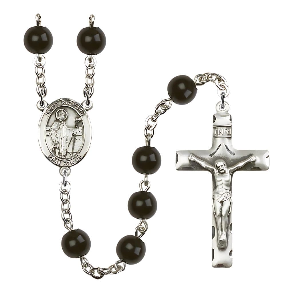 St. Richard 7mm Black Onyx Bead Engravable Rosary | Bliss USA