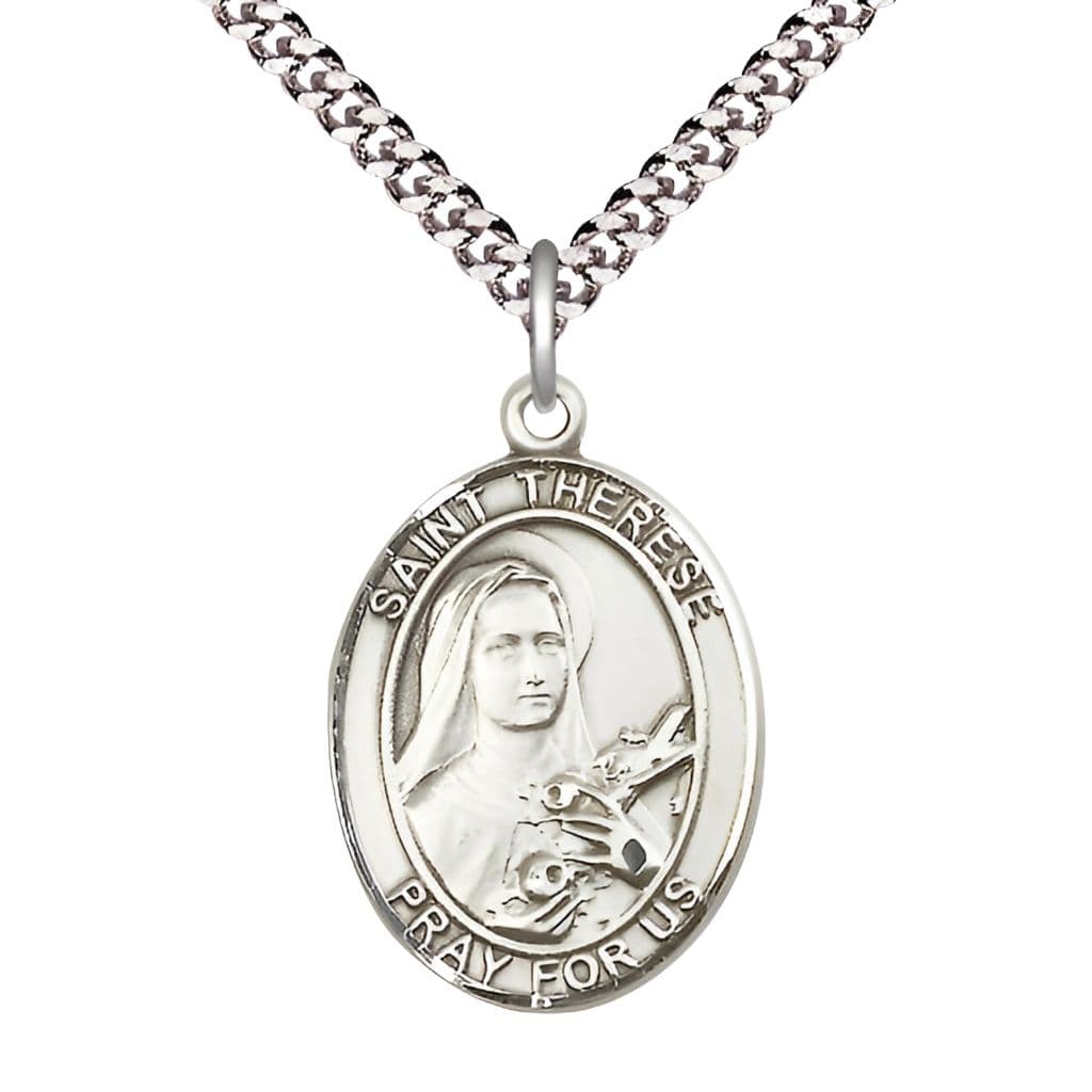 Discover the St. Therese of Lisieux Pewter Oval Medal, a carefully crafted Catholic devotional piece made in the USA by Bliss Manufacturing. Honoring St. Therese, the Patron Saint of aviators and florists, this durable and elegant medal is perfect for personal devotion or as a meaningful gift. Presented in a deluxe gift box, it is an ideal choice for baptisms, confirmations, and other significant religious occasions. Combining lasting craftsmanship with spiritual significance, this medal offers a respectful tribute and a daily reminder of faith.