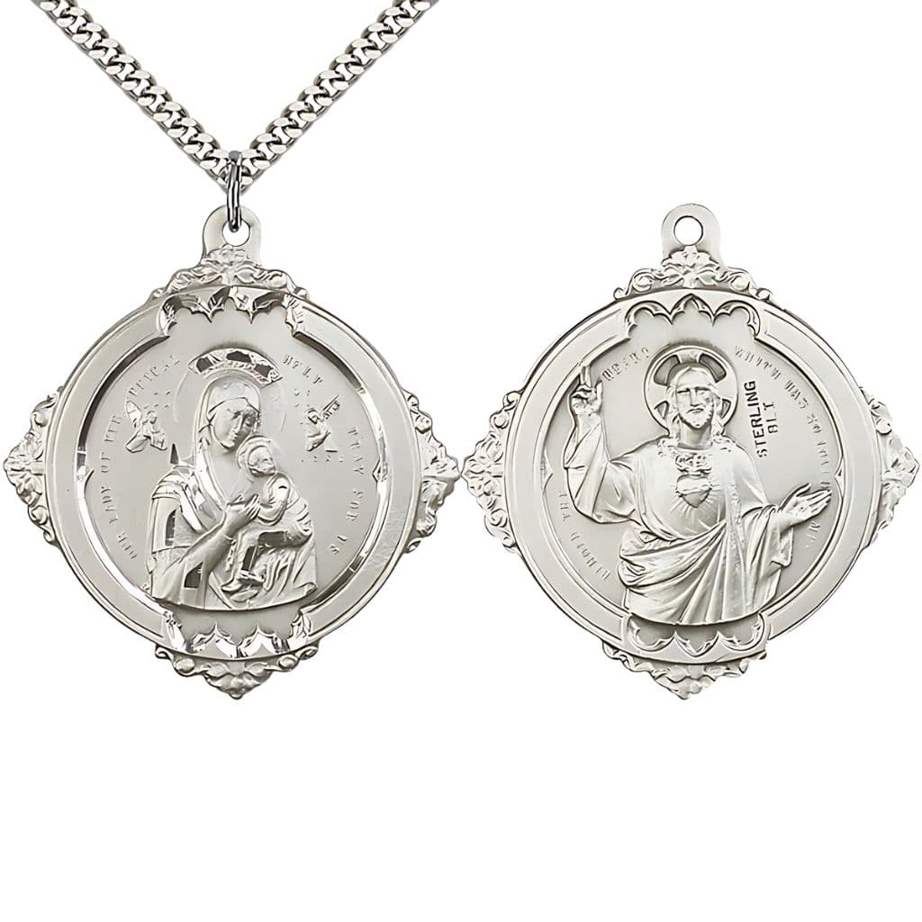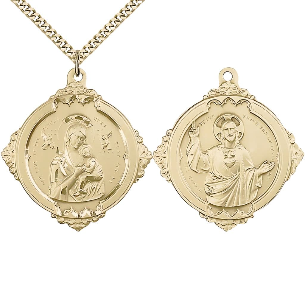 - Intricate Design: Features a 1 5/8-inch tall by 1 3/4-inch wide medal showcasing the Our Lady Perpetual Help and Sacred Heart of Jesus with exceptional detail.