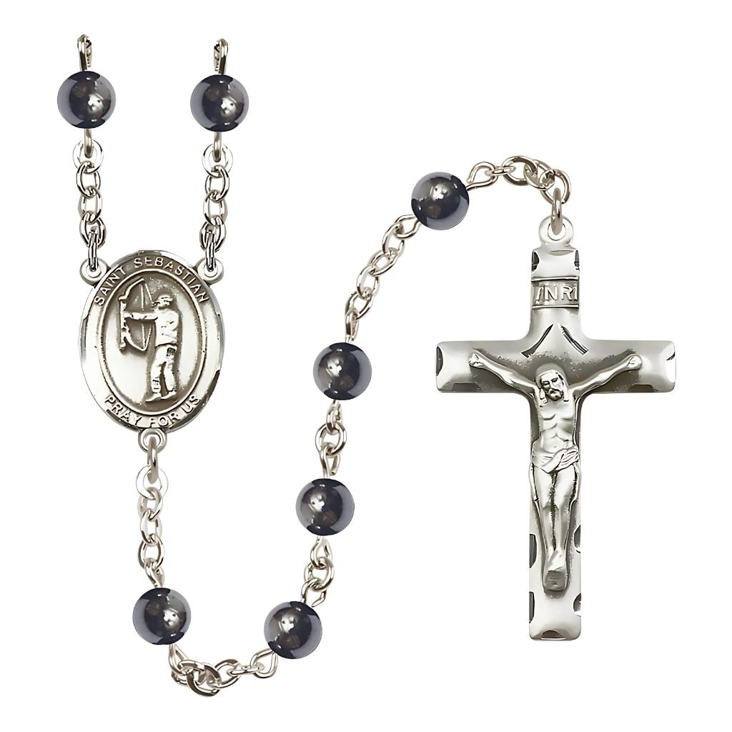Bliss St Sebastian Archery 6mm Hematite Bead Rosary
