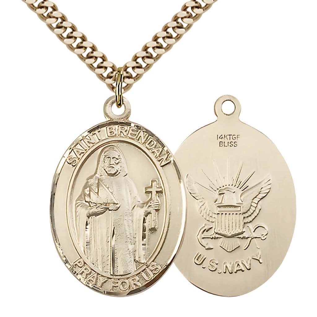 Navy St. Brendan Gold-filled Oval Medal Necklace - Bliss USA