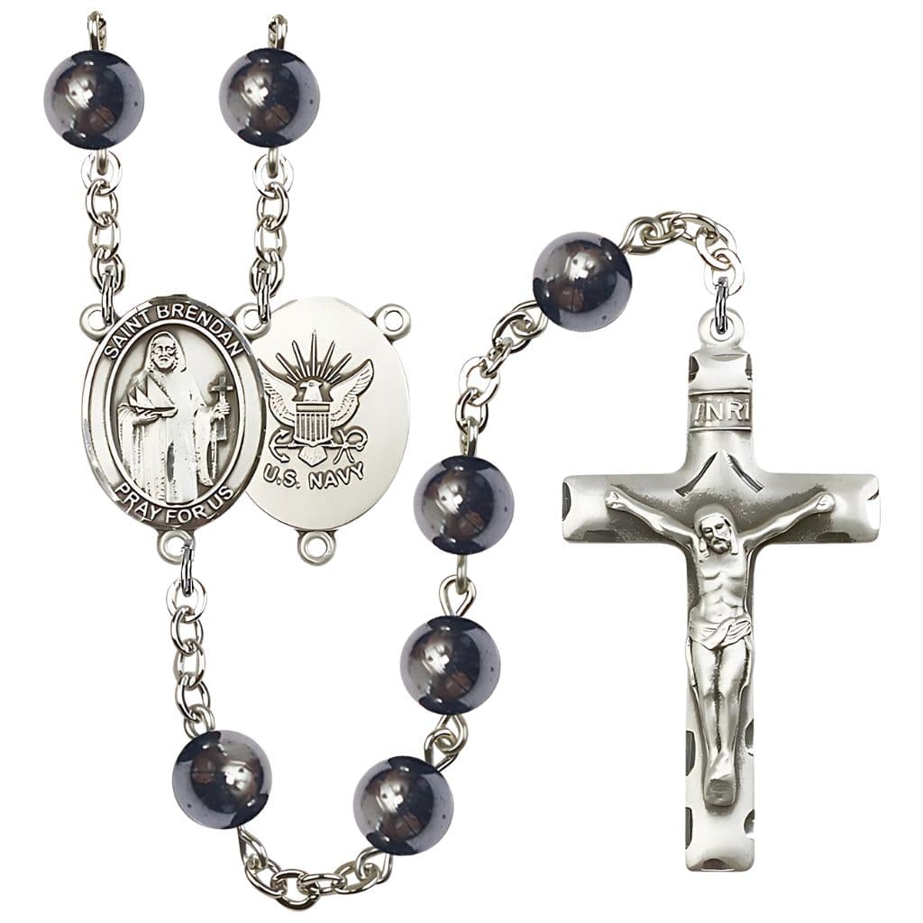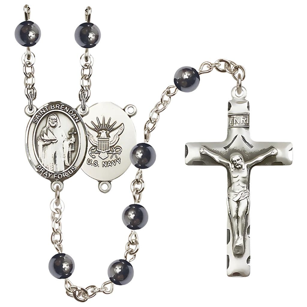 St. Brendan Navy 6mm Hematite Silver-plated Rosary