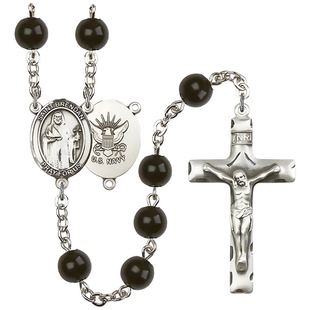 St. Brendan Navy 7mm Black Onyx Catholic Rosary | Bliss USA