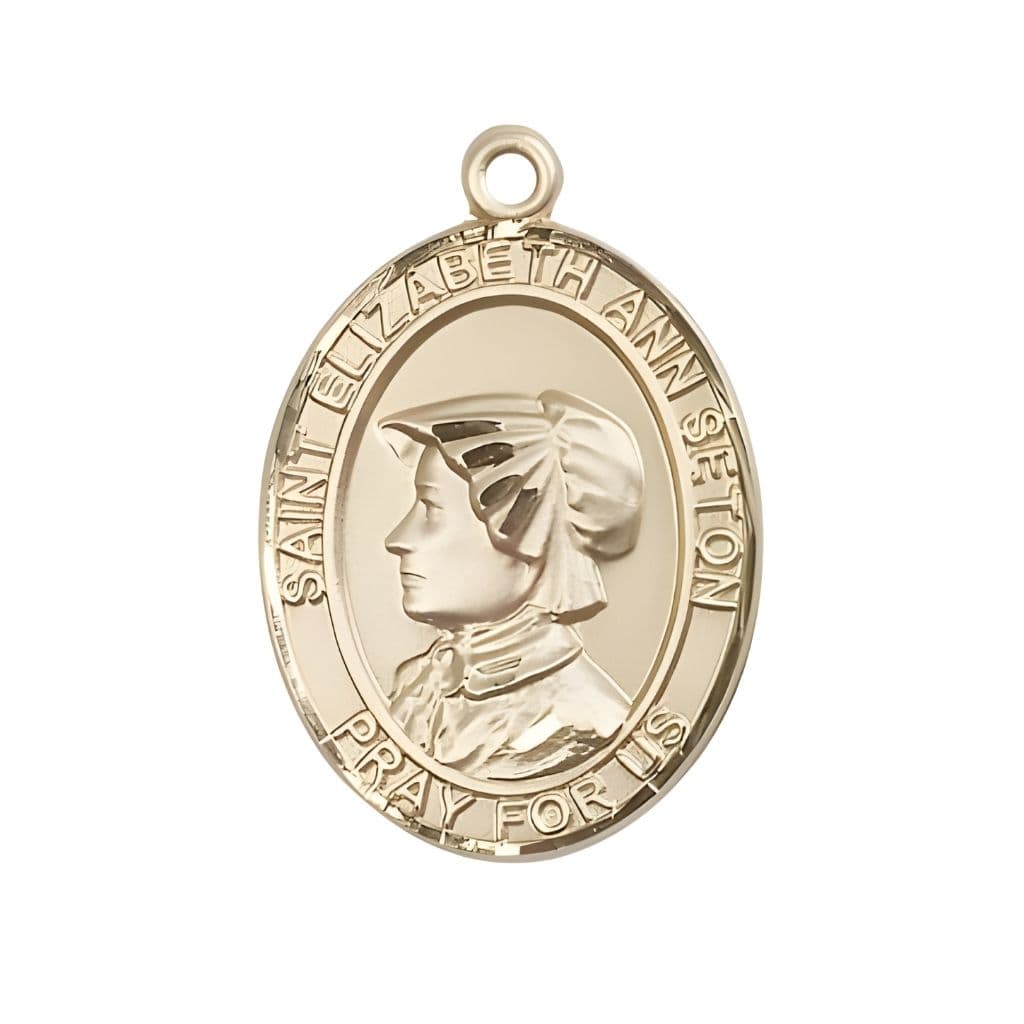 Bliss St. Elizabeth Ann Seton 14kt Gold Oval Engravable Medal Pendant