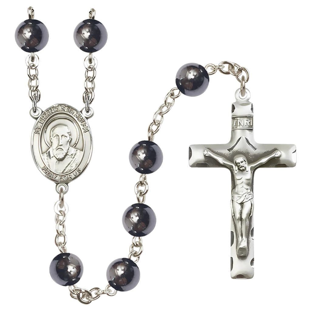 St. Francis de Sales 8mm Hematite Catholic Rosary - USA