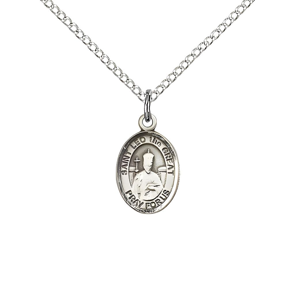 Discover the St. Leo the Great Sterling Silver Oval Children Medal, a cherished Catholic devotional piece handcrafted in the USA by Bliss Manufacturing. St. Leo the Great is beautifully honored in this elegant, high-quality medal, perfect for spiritual reflection or gifting. St. Leo the Great is the patron saint of speakers. Each medal is presented in a deluxe gift box, making it an ideal choice for baptisms, confirmations, or special religious occasions.