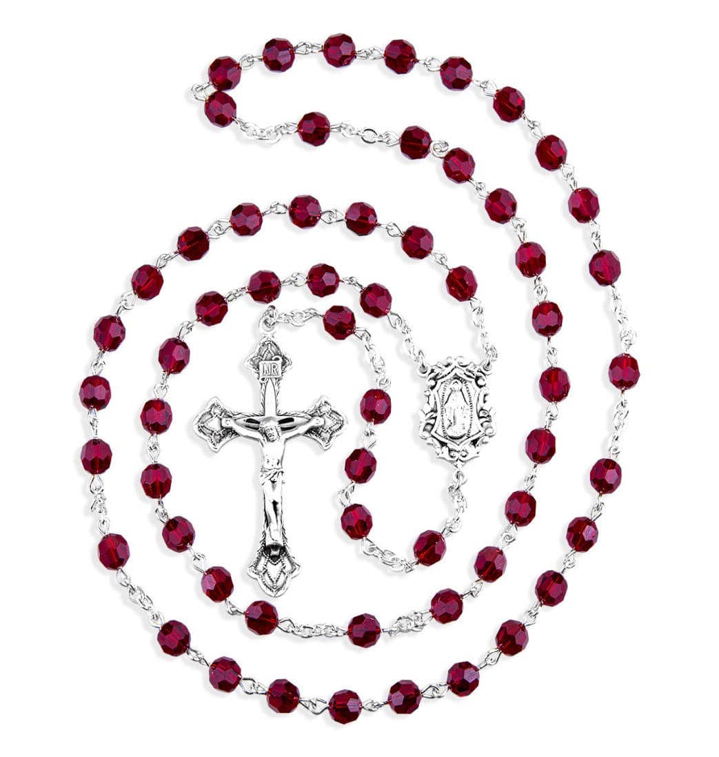 Ruby Austrian 6mm Crystal Sterling Silver Rosary | HMH